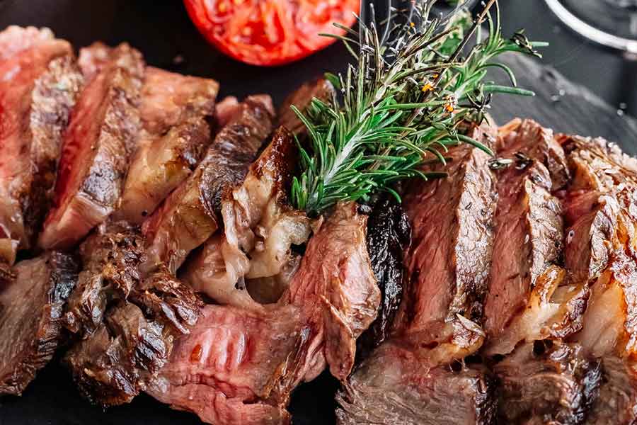 pratos com carne de vaca, frango e porco, preparados com todo carinho e